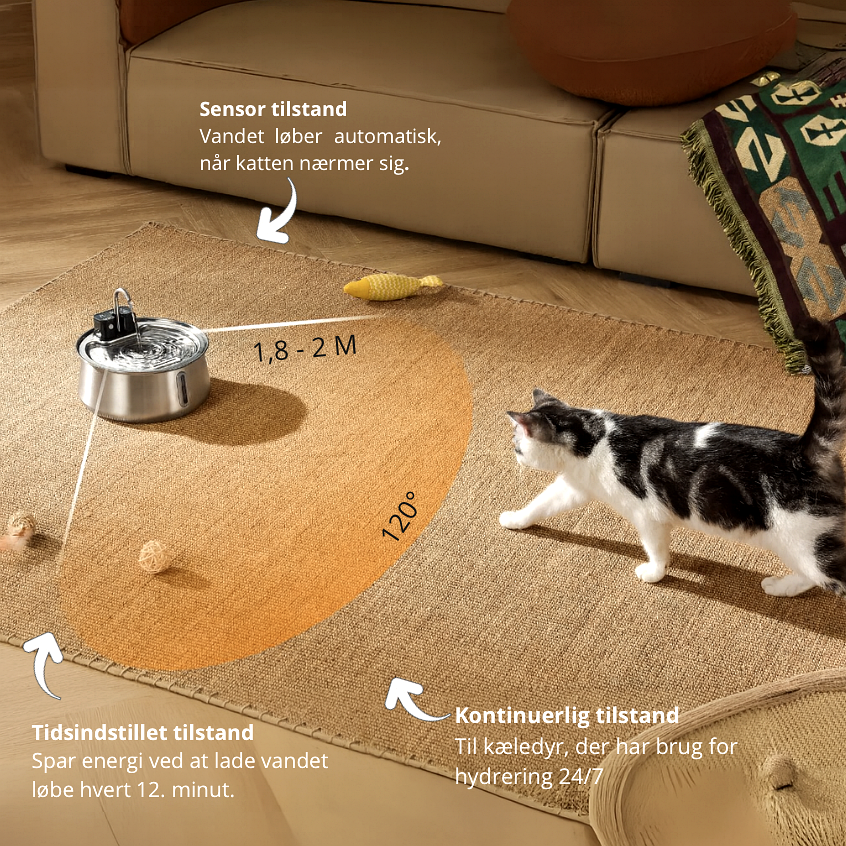 Den smarte teknologi handler ikke kun om bekvemmelighed – den tilpasser sig din kats livsstil og gør hydrering til en naturlig og behagelig del af dagen.