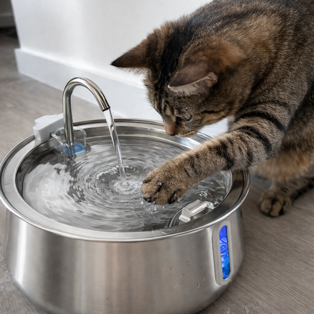 En af grundene til, at filteret er nødvendigt, er, at dit kæledyr drikker af fontænen, og vandet recirkuleres gennem filteret. Det holder vandet frit for snavs såsom pels og spyt.